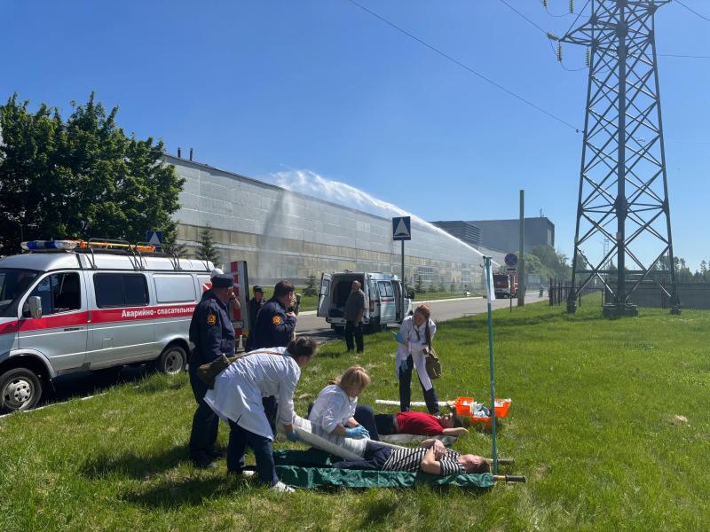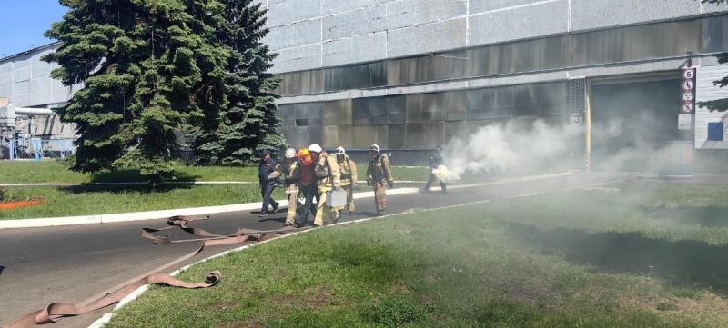 После оповещения спецслужб, согласно распоряжению руководителя учений, опасную зону оцепили и приступили к срочной эвакуации и укрытию персонала в защитное сооружение. Ответственные лица встретили расчет пожарной части и развернули санитарный пост для пострадавших. По команде начальника расчета пожарные приступили к ликвидации очага пожара и вынесли пострадавших, передав их работникам заводского здравпункта.