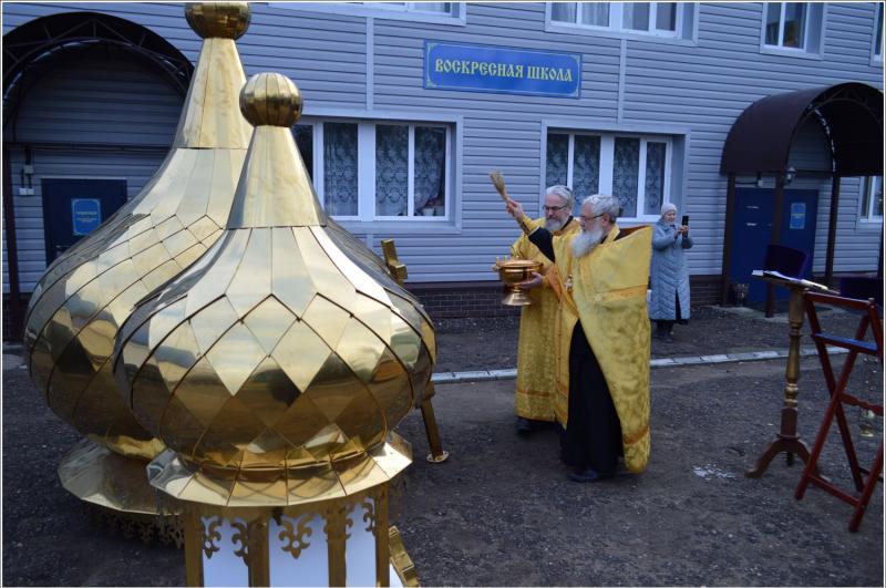 Обряд освящения христианских символов на церковном подворье совершил благочинный Закамского округа протоиерей Андрей Дубровин. Свидетелями стали прихожане храма: под колокольный звон и молитвы верующих новые освященные купола были подняты и водружены на крышу церкви.