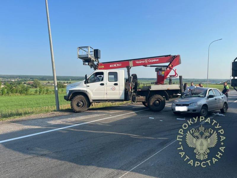 О первом ДТП рассказала пресс-служба прокуратуры РТ: недалеко от поворота на село Мелекес Тукаевского района «Лада Калина» врезалась в автовышку на шасси «ГАЗели», когда та разворачивалась. В легковушке ехали пассажиры 2013 и 2020 годов рождения. С различными травмами детей госпитализировали, водители же автомобилей не пострадали.