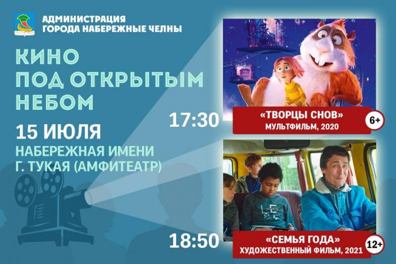 Во всех трех кинотеатрах сеансы запланированы сдвоенные. В амфитеатре набережной Тукая 15 июля в 17:30 показ начнется мультфильмом «Творцы снов», а в 18:50 горожане смогут посмотреть комедию российского режиссера Айнура Аскарова «Семья года».