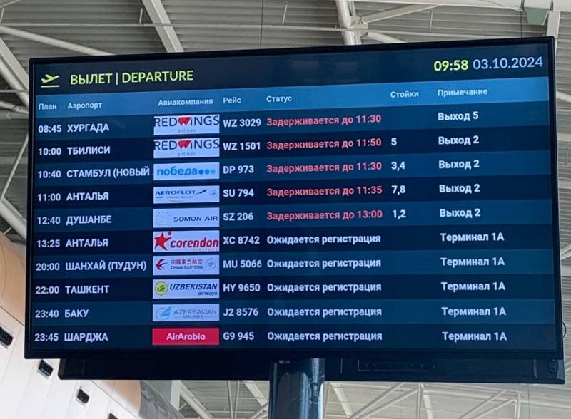 Судя по актуальным данным табло в аэропорту Казани, все рейсы на вылет, независимо от заявленного времени отправления, пока отложены до 11.30.