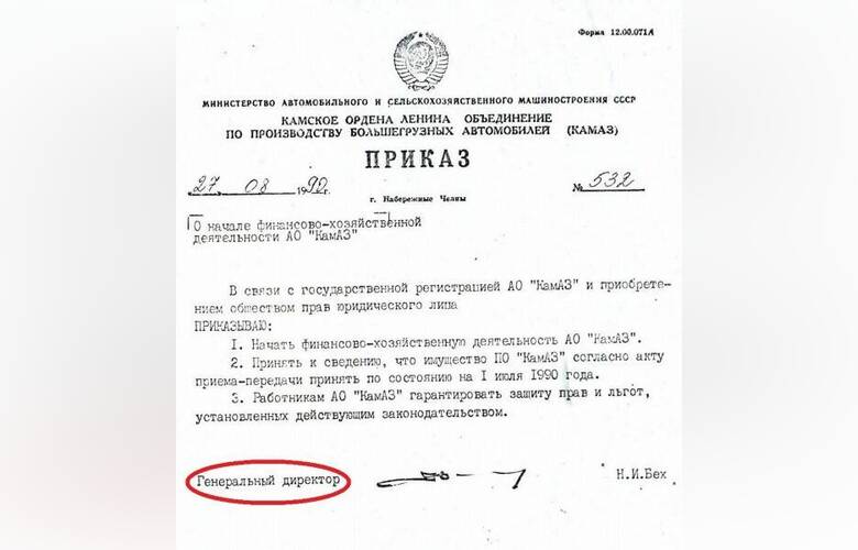 Было время, когда в нашей стране было множество президентов. Помимо Президента Российской Федерации, были президенты республик, президенты ассоциаций, банков, фондов и различных компаний. Мода на президентство не обошла стороной и КАМАЗ. Впервые президентом КАМАЗа стал именоваться Бех Николай Иванович вскоре после акционирования компании в 1990 году, а именно после 15 февраля 1991 года, когда общее собрание акционеров утвердило новую редакцию Устава АО «КАМАЗ».