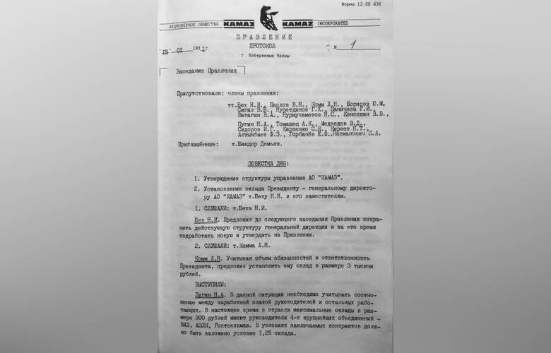 Если желаете знать какая была установлена зарплата для первого президента-генерального директора акционерного общества «КАМАЗ», тогда прочтите протокол заседания правления АО «КАМАЗ» от 15 февраля 1991 года.