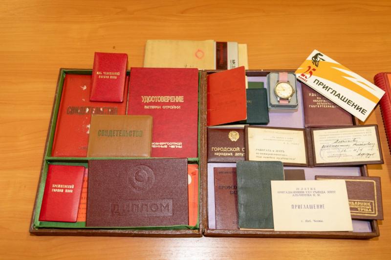Особенно в музее дорожат переданными в дар личными вещами знаменитого бригадира бетонщиков «Автозаводстроя» Константина Альчикова, уложившего первый кубометр бетона в фундамент ПРЗ в 1971 году и работавшего там до 1981 года. Бесценный подарок сделал его сын Анатолий Альчиков, который сам работал мастером на заводе, построенном отцом. В числе экспонатов часы строителя, его калькулятор, документы: диплом Нижнекамского энергостроительного техникума с отличием, свидетельство о занесении в Книгу почета «Камгэсэнергостроя», удостоверение депутата городского Совета. Здесь же записная книжка с замечательными рисунками, сделанными рукой Константина Михайловича, а также пригласительный билет на премьеру фильма «Коней на переправе не меняют» с автографами Геннадия Королькова и Галины Польских.