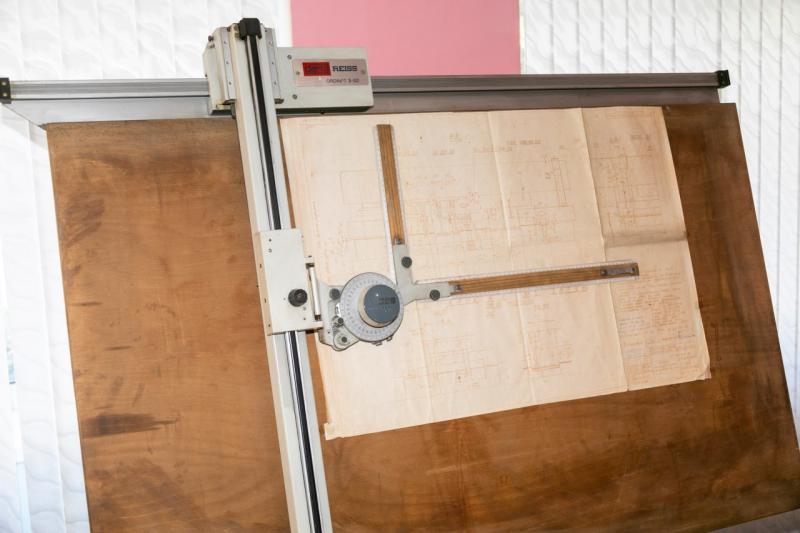 Другой раритетный рабочий инструмент - кульман. Сегодняшним конструкторам, работающим в специальных программах, сложно понять, как их предшественникам удавалось выдавать на-гора солидный объем чертежей, стоя у этой доски.
