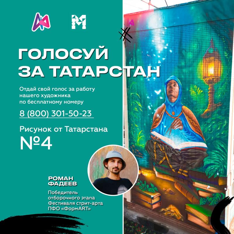 В настоящий момент проходит финальное голосование за лучшие муралы федерального округа. Нужно выбрать одну из работ, представленных участниками из 14 регионов ПФО. Проголосовать можно по номеру +7 (800) 301-50-23.