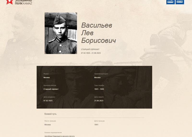 Проект был запущен в феврале 2025 года и приурочен к 100-летию Льва Васильева – первого генерального директора «КАМАЗа», участника Великой Отечественной войны и Героя Социалистического Труда. Именно он возглавил виртуальную колонну памяти, став символом преемственности поколений и единства прошлого и настоящего.