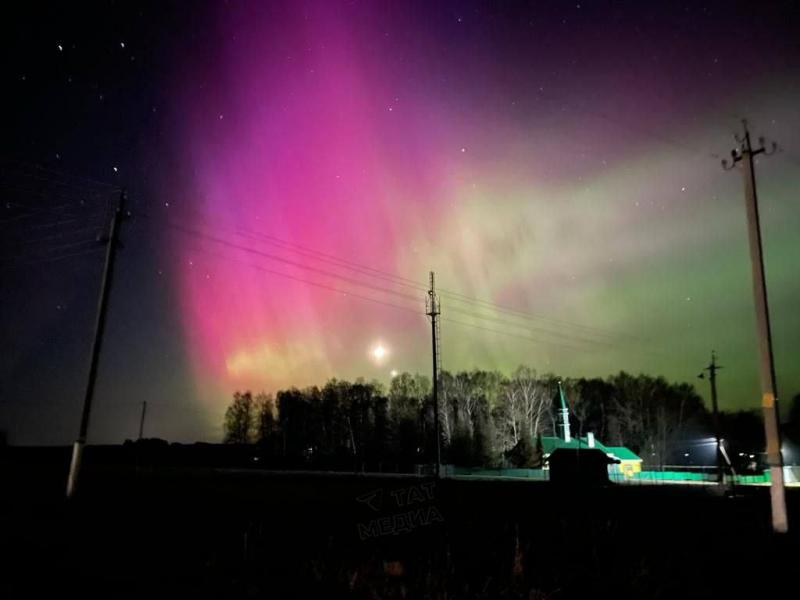 Жители Набережных Челнов и других городов Татарстана делятся фотографиями, сделанными минувшей ночью, освещенной северным сиянием.