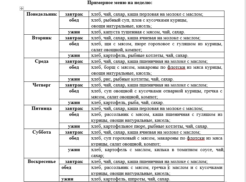 В заказе УМВД Набережных Челнов на организацию питания задержанных в ИВС отражено ориентировочное недельное меню. Так, в понедельник на завтрак в спецприемнике будут подавать перловую кашу на молоке с маслом, хлебом и сладким чаем. Обед: уха, куриный плов, овощи, хлеб и кисель. Ужин: тушенная капуста с мясом, хлеб, чай с сахаром.