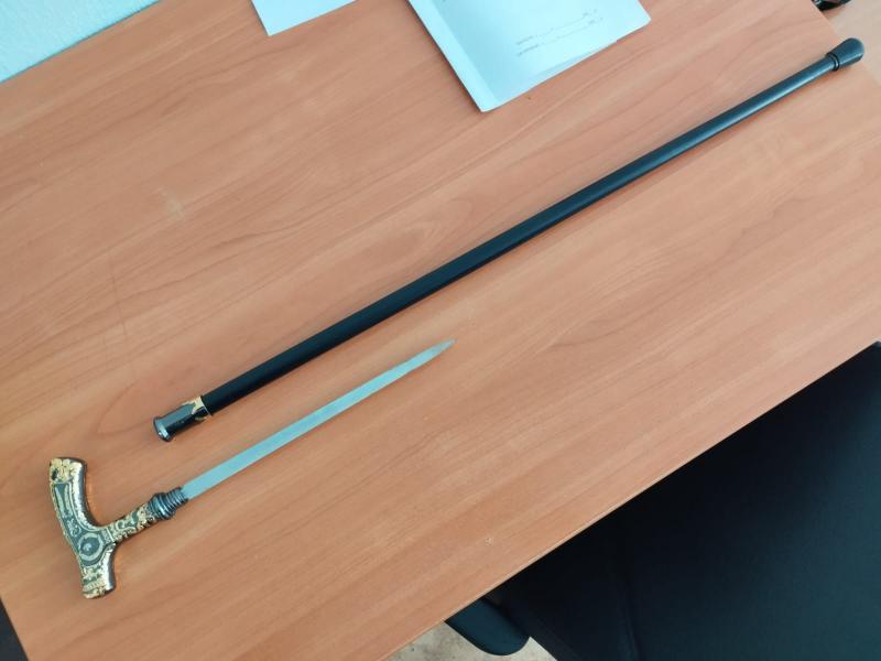 Судебному приставу, который обеспечивает порядок на процессах, пришлось сегодня составить административный протокол на потерпевшую: женщина, травмированная в ДТП, пришла на процесс с тростью, в которой был спрятан кинжал.