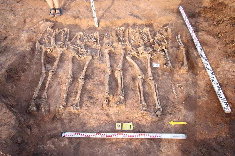 На данный момент исследователям удалось найти около 30 погребений, некоторые из которых содержат обезглавленные останки. Помимо этого, было обнаружено коллективное захоронение из пяти человеческих скелетов.
