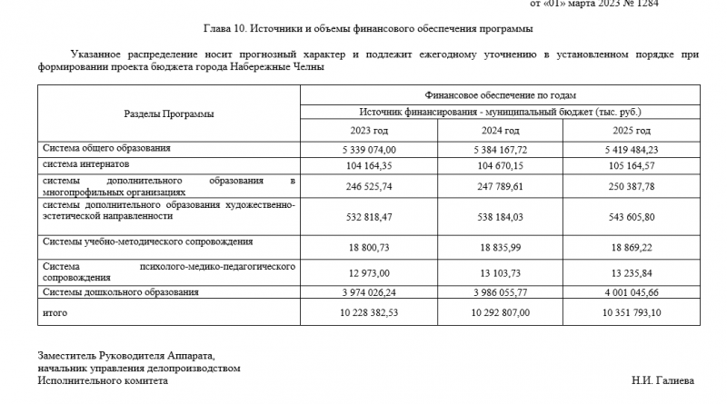 Администрация Набережных Челнов уточнила суммы финансирования программы «Развитие системы образования города» на период 2023-2025 год. Постановление подписал руководитель исполкома Фарид Салахов.