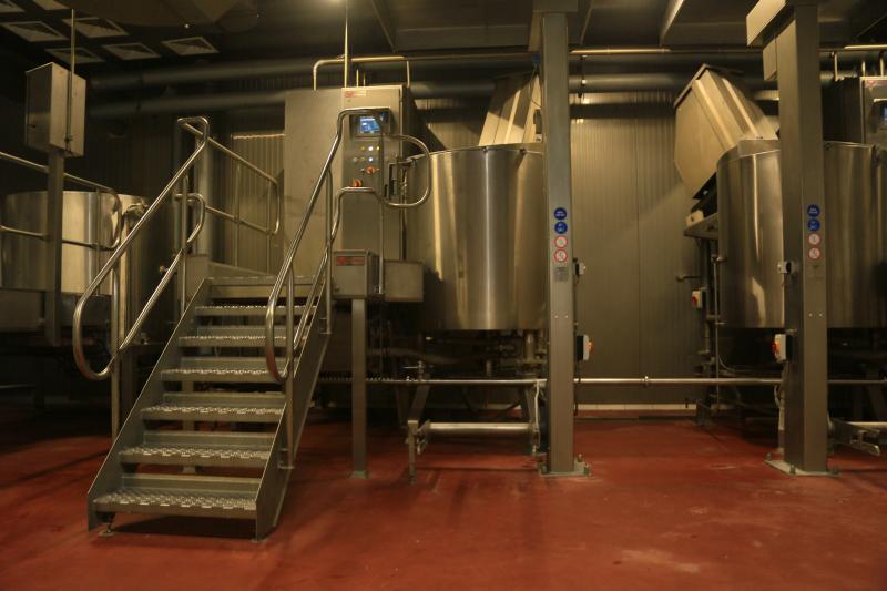 Всего в «Школьном питании» восемь цехов, в одних работают с сырьем, в других – с готовой продукцией. Делегаты увидели их все: в мясном цеху сырье нарезается под размер согласно рецептам, чтобы в столовых оно правильно готовилось; в птицегольевом птичье мясо отделяется от костей; в кондитерском пекутся пирожные, которые продаются в столовых за отдельную плату – из медового, песочного, слоеного или вафельного теста… Отдельно стоит отметить технологию приготовления супов, соусов, жидких каш и напитков. Готовят их в «Школьном питании» при низких температурах в вакууме. Метод называется sous-vide, а оборудование перед аккредитацией меню испытывалось в московском НИИ им. Горбатова. Перечисленные виды блюд томятся без кипения, на паровой рубашке в больших котлах, затем варево разливается в семислойные упаковки и отправляется в полутонный чиллер для охлаждения при температуре 1°С, оттуда – в школьные столовые.