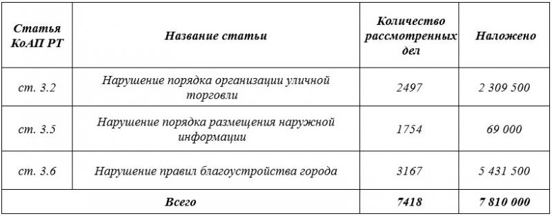 Как пояснил начальник управления городского хозяйства и жизнеобеспечения населения Ильдар Гайнуллин, штрафы наложены по статьям КоАП РТ 3.2, 3.5, 3.6: