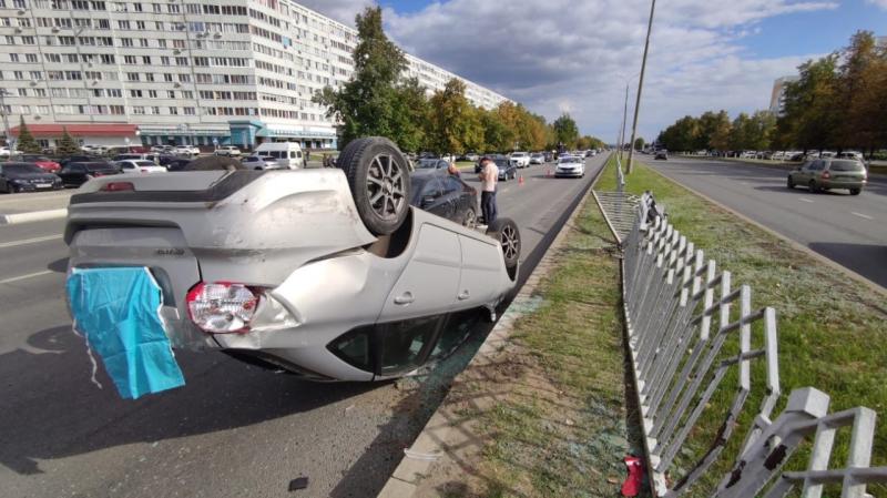 Второе ДТП, произошедшее в 13:15 того же дня, обошлось без смертей. На проспекте Хасана Туфана водитель LADA Granta не уступила дорогу автомобилю Kia Rio при перестроении. От удара Granta перевернулась на крышу.
