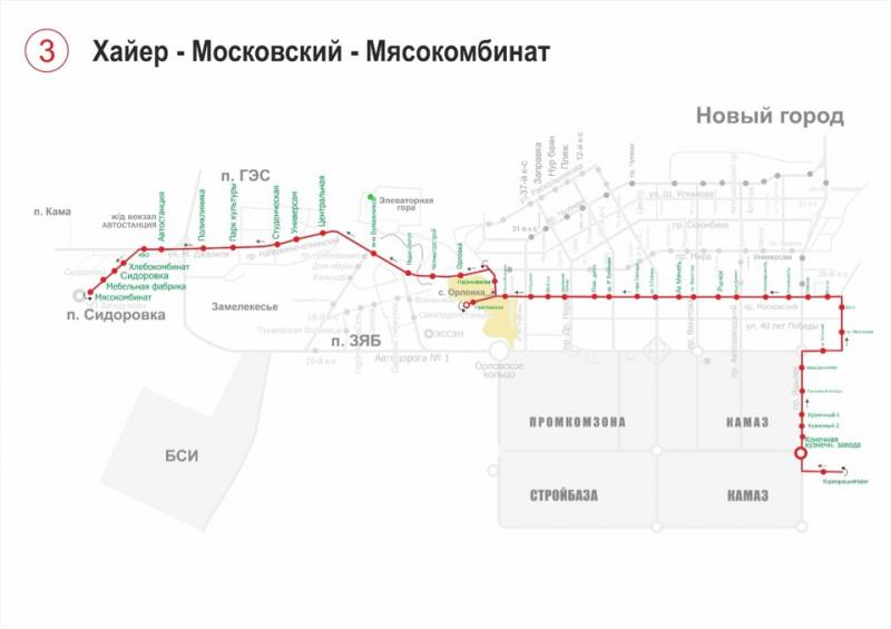 В Набережных Челнах новые автобусы №№ 2 и 3 поедут по одному маршруту в разных направлениях. Схемы этого маршрута, а также будущей траектории движения автобуса №26 исполком города приложил к тендерной документации для перевозчика, которым уже определен МУП «Горкоммунхоз».Автобус №2 начнет свой маршрут от остановки «Мясокомбинат» в Сидоровке и, следуя по Набережночелнинскому проспекту, заедет в ЖК «Притяжение». Оттуда автобус проедет вдоль Московского проспекта с переходом на проспект Полякова, далее пройдет по проспекту Яшьлек до улицы Корпорация Haier. Маршрут №3, соответственно, пройдет по тем же улицам в обратном направлении.