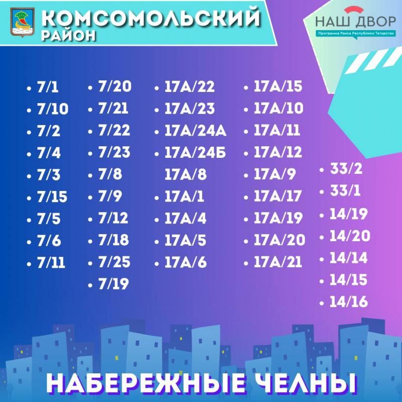 Администрация Набережных Челнов опубликовала полный список дворов, которые будут благоустроены в 2025 году по программе «Наш двор». Всего обновят 79 дворов, 21 из них был определен голосованием жителей города, остальные – администрациями районов в соответствии с параметрами программы. В числе критериев отбора - постройка домов до 2014 года и неудовлетворительное состояние асфальта по результатам инвентаризации БТИ. Также придомовая территория попадает в «Наш двор», если прежде она не входила в иные программы благоустройства.