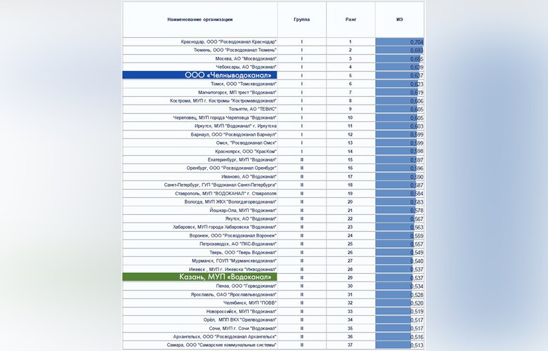 По словам Долматова, экспертиза эффективности российских водоканалов разных форм собственности выявила целый ряд проблемных моментов в их деятельности. Институт анализировал работу организаций по 33 ключевым критериям. Среди прочего специалисты оценивали тарифную политику в регионах, экономическую и инвестиционную эффективность водоканалов. По совокупности параметров водоканал Набережных Челнов определил казанский на 24 позиции.