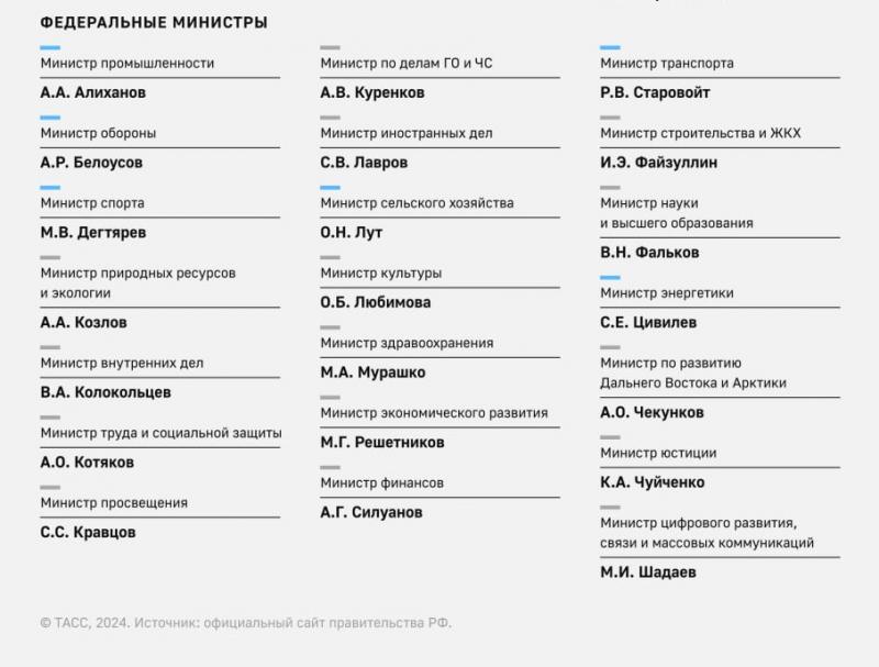 - Президент РФ Владимир Путин назначил на должности новых министров и вице-премьеров: