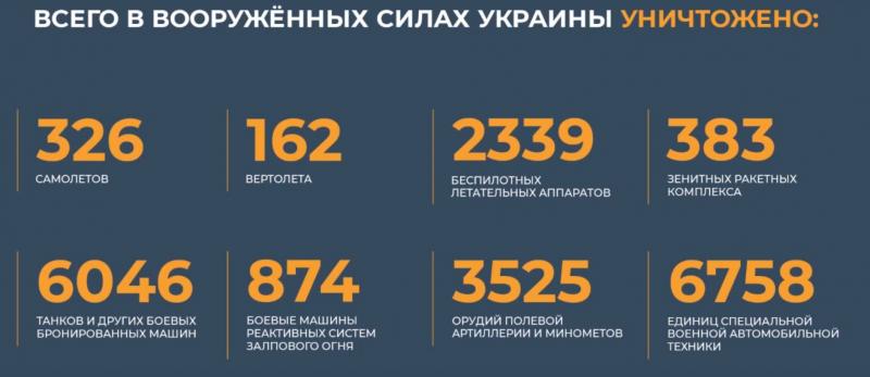 - ВС РФ отразили все атаки ВСУ на николаево-криворожском направлении, за сутки уничтожены до 130 украинских военнослужащих. На краснолиманском направлении потери противника составили свыше 120 человек. Более 30 военных ВСУ погибли при попытке атаки на село Куземовка (ЛНР). На сватовском направлении СВУ также понесли потери и не добились результата, как и на Херсонском направлении