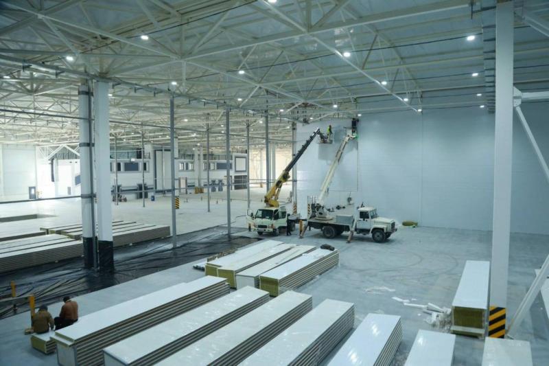 Второй корпус состоит из блоков А и В площадью 20 тыс. кв. м. каждый. Как сообщает пресс-служба КИП "Мастер", в обоих установлены колонны и фермы, идет монтаж сэндвич-панелей.