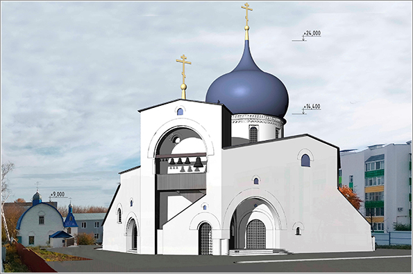 Утвержден эскизный проект нового храма для прихода Святителя Тихона, который планируется построить рядом с действующей в Набережных Челнах Свято-Тихоновской церковью.