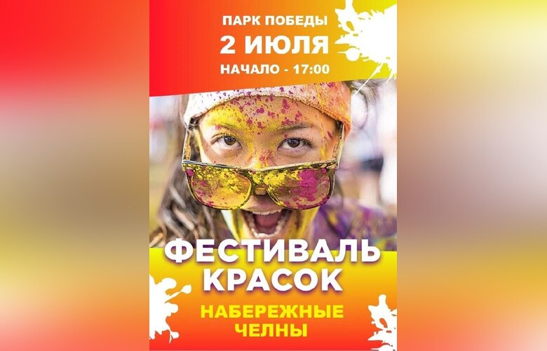 В Набережных Челнах 2 июля в парке Победы проведут фестиваль красок под названием «Colors». Мероприятие смогут посетить жители города любых возрастов. Вход свободный, начало в 17:00.