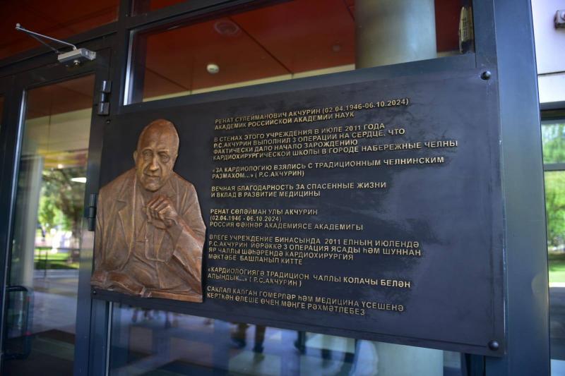 Больнице скорой медицинской помощи было официально присвоено имя Рената Акчурина весной этого года. Бюст, установленный у главного входа, дополнил мемориальный комплекс, в который уже входят надпись на здании и барельеф. Профессор Акчурин был пионером микрохирургии в кардиологии и провел множество сложнейших операций, самая известная из которых — аортокоронарное шунтирование сердца Бориса Ельцина в 1996 году.