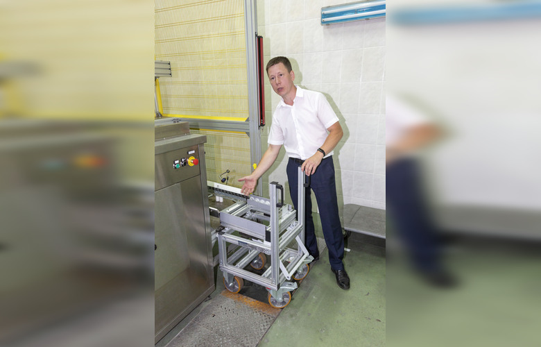 Виталий Гильман доволен – тележка для перевозки инструмента идеально стыкуется с загрузочной системой моечной линии