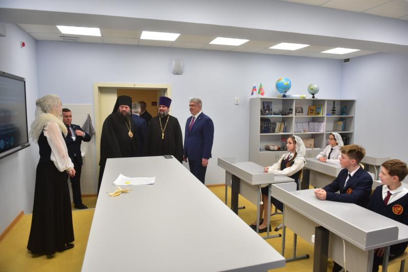 В Набережных Челнах на территории храма Святого Великомученика Георгия Победоносца сегодня торжественно открылась православная гимназия, построенная на средства благотворителей и пожертвования прихожан. На открытие прибыли митрополит Казанский и Татарстанский Кирилл, мэр города Наиль Магдеев, представители "КАМАЗа", Картонно-бумажного комбината и других предприятий, внесших свою лепту в строительство учебного заведения.