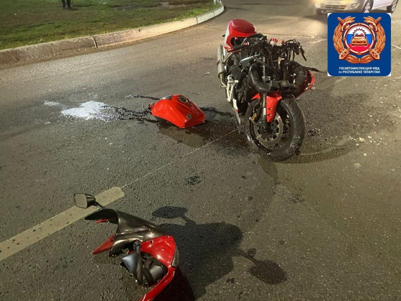 Накануне в районе дома №7 по Набережночелнинскому проспекту пьяный мотоциклист выехал на встречную полосу и врезался в автомобиль Honda. Как выяснилось после ДТП, у водителя мотоцикла не было и водительского удостоверения.