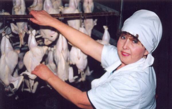 Внизу на фотографии Аниса Рахимова – рабочая мясного цеха заготовочной фабрики