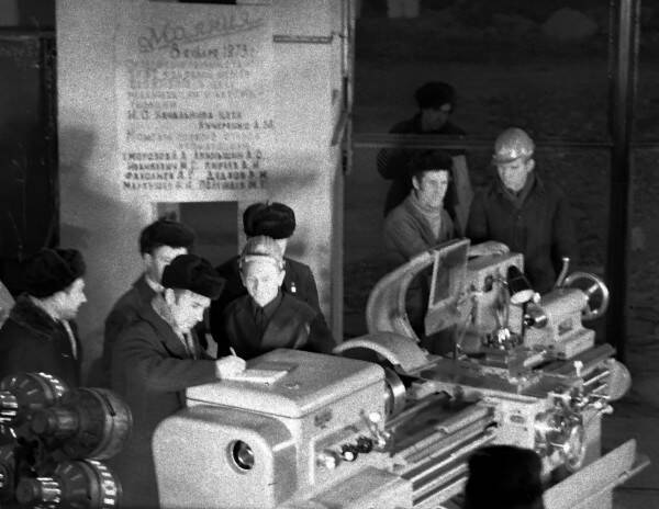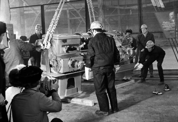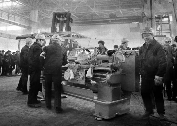 Первый станок смонтировали рабочие Акиньшин Анатолий Сергеевич, Морозов Алексей Алексеевич, Киреев А.И., Фалалеев А.С., Дедков Виктор М., Иванкевич М.С., Меркушев Н.Н. и Полежаев М.Г.