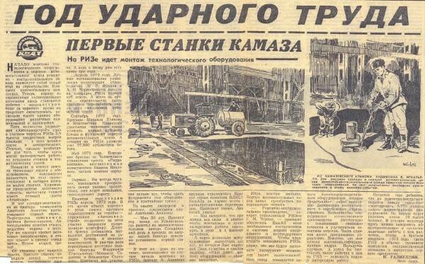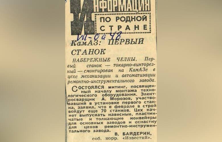 8 января 1973 года на первенце КАМАЗа - ремонтно-инструментальном заводе был смонтирован первый токарно-винторезный станок. По сути, в тот день был установлен первый станок на всём КАМАЗе.