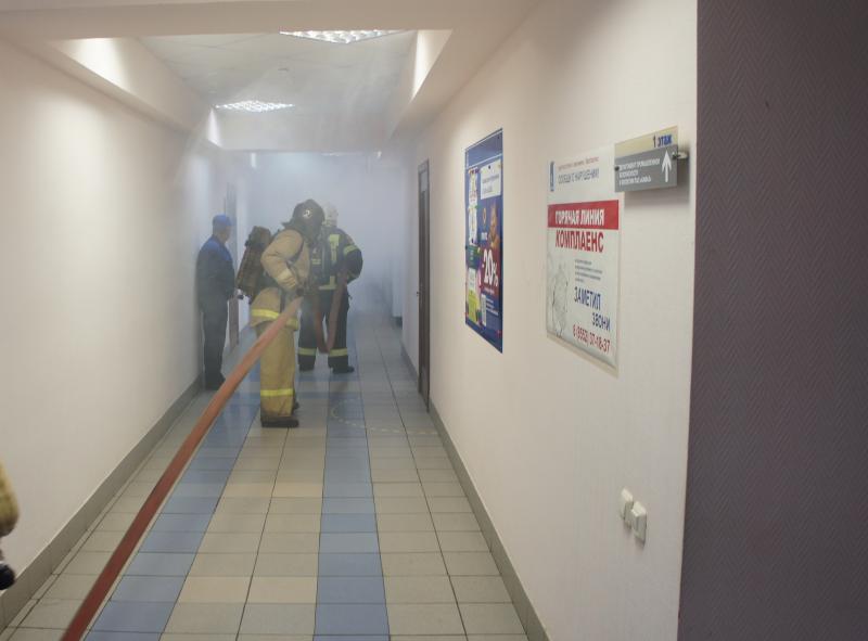 Тем временем пожарные потушили огонь. Для закрепления навыков начальник пожарной части филиала «Росгвардии» Олег Зебург проинструктировал эвакуированный персонал на предмет использования огнетушителей в разных чрезвычайных ситуациях.