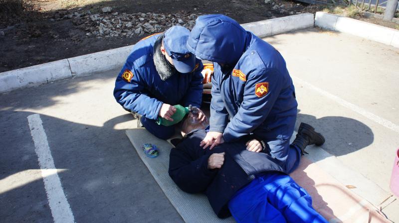 К «горящему» зданию прибыли пожарный расчет и звено спасателей-росгвардейцев. Спасатели вынесли из АБК и оказали первую помощь мужчине, который условно отравился продуктами горения.