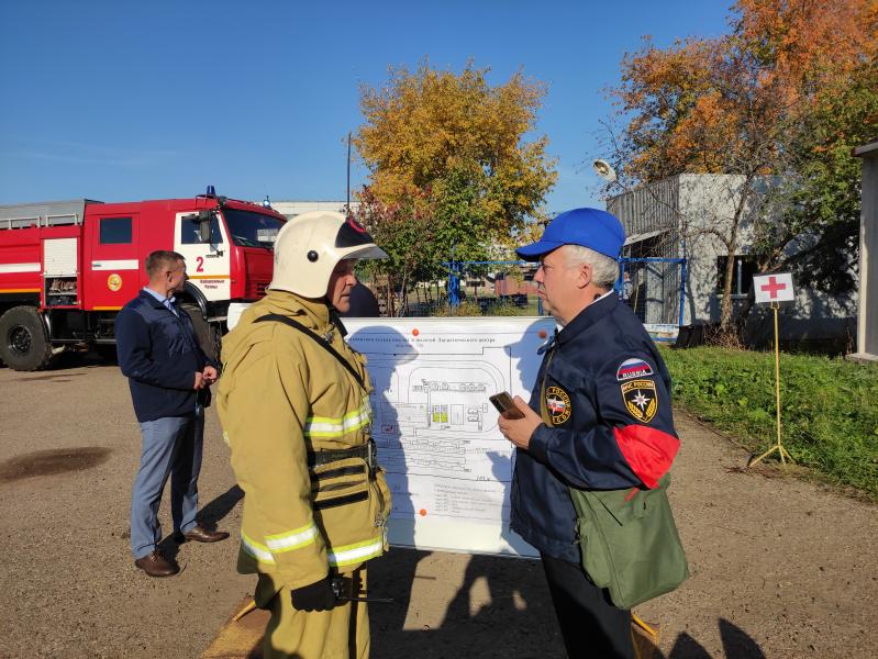 Сразу после взрыва мастер участка включил звуковую сирену С-28 и по громкоговорителю объявил об эвакуации со склада. По его звонку специалист дежурно-диспетчерской службы передал сообщение о ЧП должностным лицам ЛЦ и силовым структурам Набережных Челнов. Мастер тем временем известил пожарную службу ФГУП «Охрана» Росгвардии, руководителя учений и станцию скорой помощи, поскольку при взрыве условно пострадал его коллега.