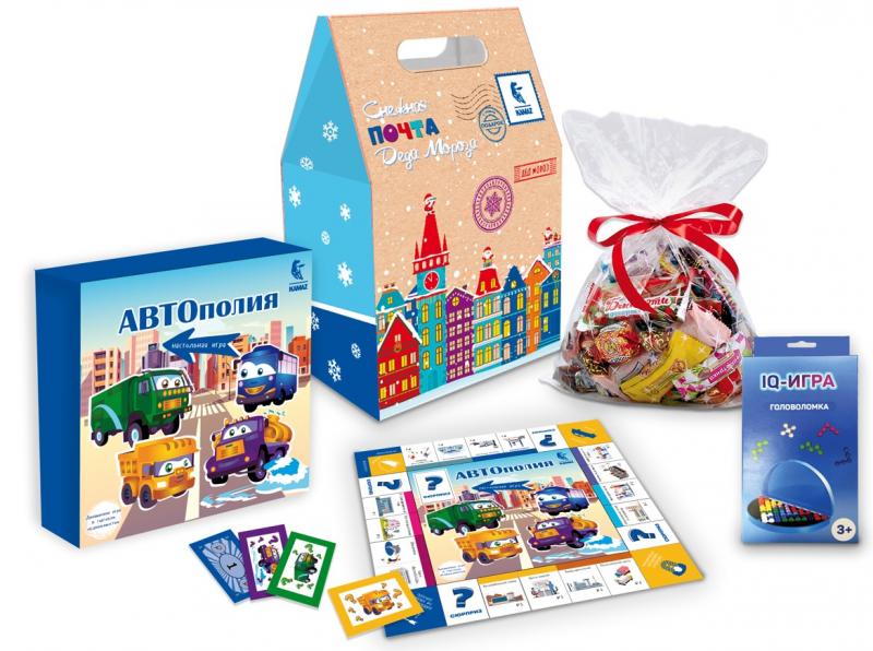 В короб-посылку «Снежная почта Деда Мороза», оформленную логотипом "КАМАЗа", войдут: