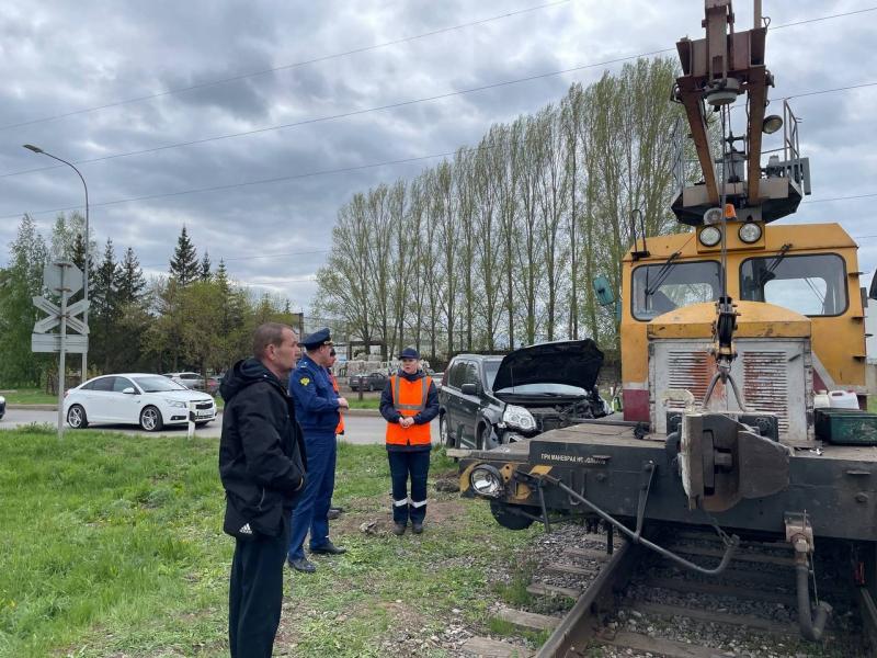 По словам заместителя транспортного прокурора Руслана Курочкина с места происшествия, авария произошла накануне около 13:30. От столкновения с железнодорожным краном повреждения получил автомобиль Nissan X-trail, из людей никто не пострадал. Обстоятельства ДТП устанавливаются.
