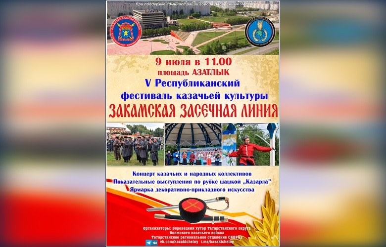 В ближайшее воскресенье площадь Азатлык примет V фестиваль казачьей культуры «Закамская засечная линия», в котором примут участие казачьи и народные коллективы, и также сольные исполнители из Удмуртии и городов Татарстана - Набережных Челнов, Нижнекамска, Альметьевска, Бугульмы.