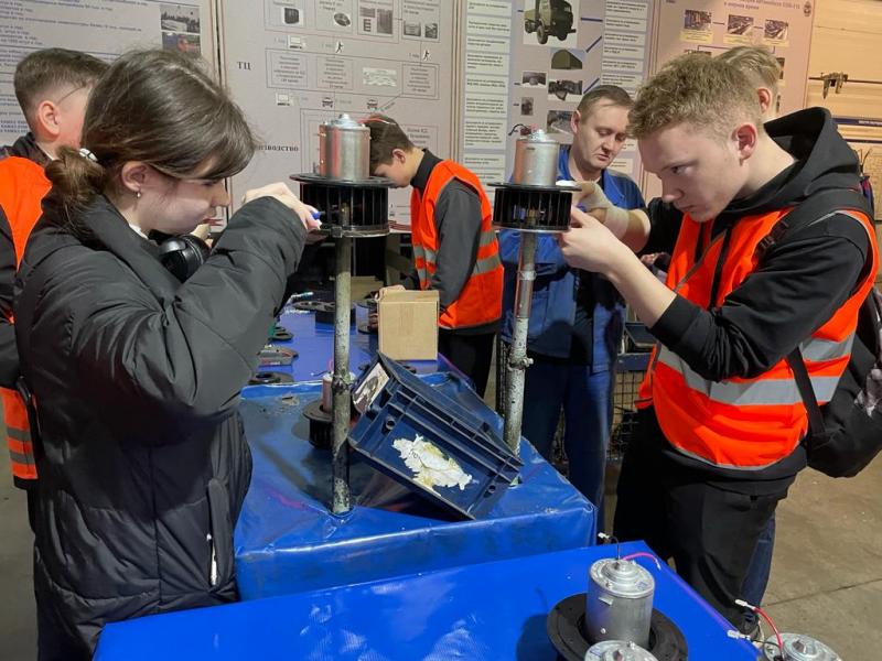 На автомобильном заводе объектом внимания гостей стал главный сборочный конвейер и только что собранный автомобиль. Собственные руки ребята приложили здесь к сборке электродвигателя для системы охлаждения машины.