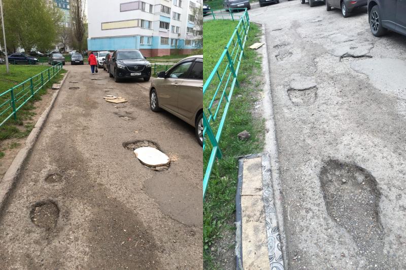 В Набережных Челнах один из жителей поделился в соцсетях снимками местного проезда в 52-м комплексе, оставив немногословную подпись: «Везде ямочки». На кадрах можно увидеть около десяти ям, часть из которых автолюбители залатали картоном и деревянным листом.