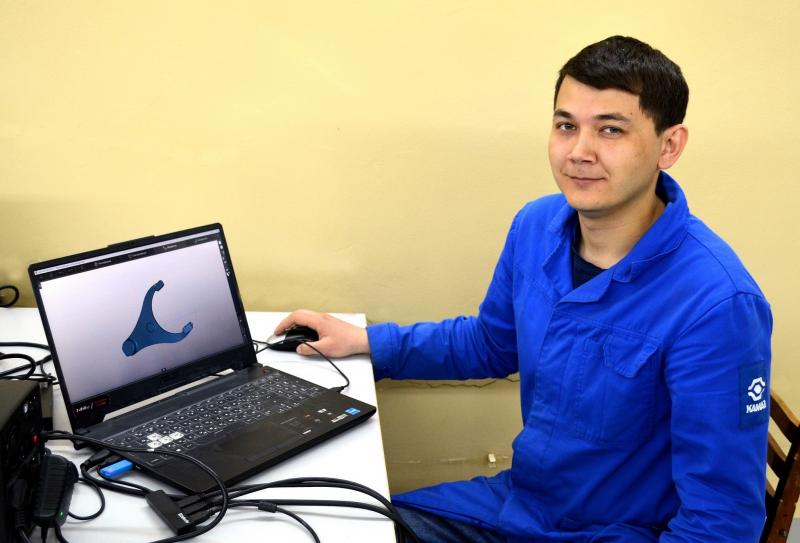 Ленар Назмиев пришел на КЗ в 2019 году студентом вуза. Сегодня ему доверена работа с новейшим оборудованием из арсенала метрологической службы – 3D-сканером Range Vision PRO. Ленар умело сканирует штамповую оснастку или небольшие поковки для будущих 3D-моделей