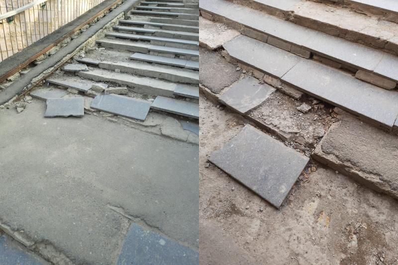 На дк "Энергетик" сделали. Но как вода текла, так и течет.Под киосками барыги ступеньки забетонили, так и стоят как ступень для великанов.Сейчас выглядит как и без ремонта
