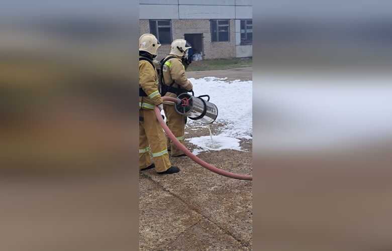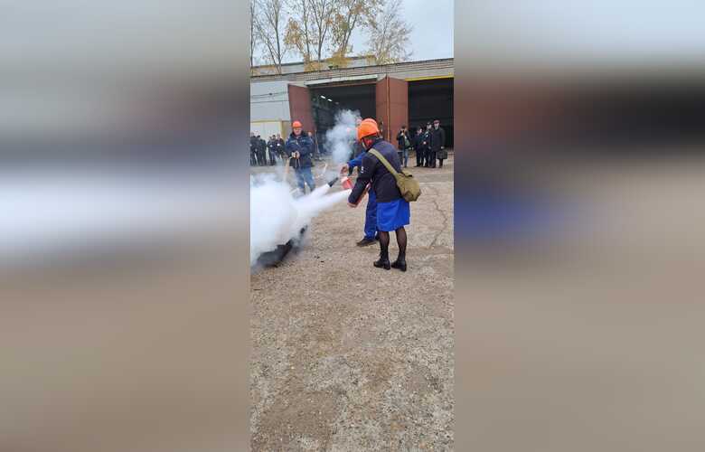 Локализовать возгорания собственными силами по сценарию не удалось, поэтому к тушению пожара подключился прибывший к зданию на пожарном автомобиле пожарный расчет в составе трех человек. Место условного возгорания залили пеной. Кроме того, здесь же было развернуто аварийно-спасательная формирование, основная функция которого разведка, поиск и вынос пострадавших.
