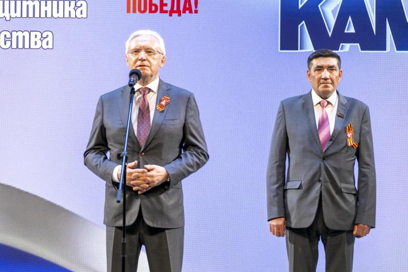 На праздничном вечере в Органном зале "КАМАЗ" собрал своих ветеранов, действующих работников, а также челнинцев, прошедших афганскую и чеченскую войны, участников СВО и их семьи. Перед аудиторией со словами благодарности и пожеланиями выступили гендиректор компании Сергей Когогин, мэр Набережных Челнов Наиль Магдеев и заместитель председателя профкома "КАМАЗа" Владислав Гаврилов.