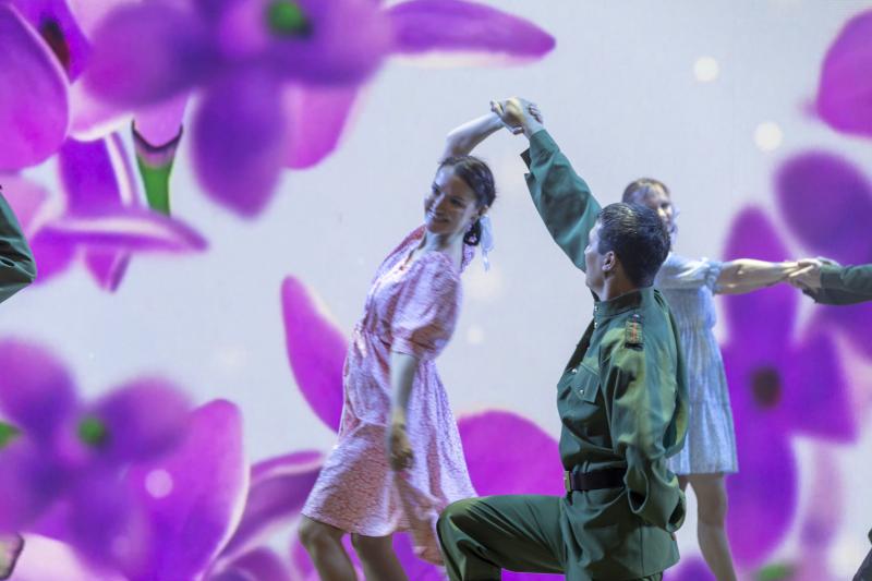 В течение всего вечера музыкальные номера перемежались хореографическими: за «Темной ночью», «Нашим городом» и «Яшьлегем хислэре» следовали «Майский вальс» и «Моя Россия» от шоу-балета Crystal, «Бисеринки» зажигательно отплясывали «Урожайную». Камазовцы исполнили «Смуглянку» и «Катюшу», Алла Сайко и Олеся Шлеменкова декламировали со сцены «Реквием» Людмилы Евсегнеевой и «Зинку» Юлии Друниной. Под занавес вечера зрители стоя помогли казанским солистам исполнить «День Победы».