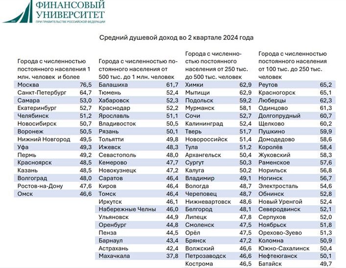 Как поясняют аналитики университета, статистика получена путем математического моделирования, в основу которого положены данные о потребительской активности населения городов, выведенные из социологических исследований.