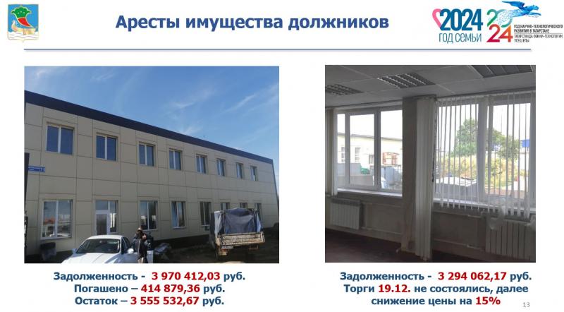 В течение года исполком совместно с приставами наложил 14 арестов на имущество должников, предполагая последующую их реализацию.