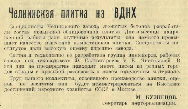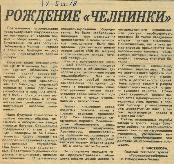 Статья из газеты «Советская Татария» от 28 февраля 1973 года сообщает в числе прочего и о времени начала производства челнинской плитки.